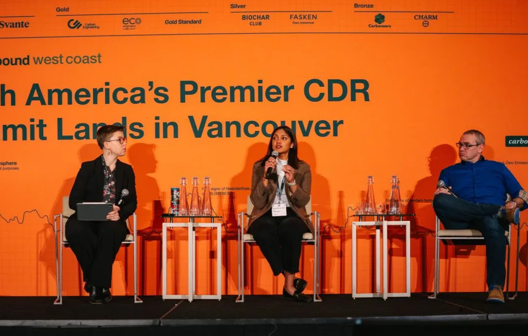 Varsha was also a panelist in a session on biomass carbon removal and its benefits, along with Grant Canary from Mast Reforestation, Harris Cohn from Charm Industrial, and panel chair Charlotte Levy.